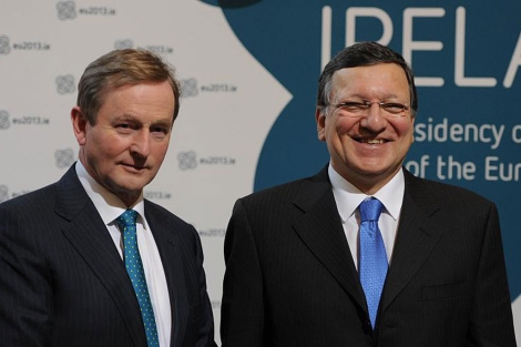 Irlanda es el primer país rescatado por sus socios de la eurozona que ocupa la Presidencia de turno europea y durante este periodo pretende dejar cerrado un acuerdo sobre la recapitalización directa de los bancos que le permita reducir su abultado endeudamiento (en 2013 alcanzará el 121% del PIB). Barroso ha confirmado que la Comisión Europea "defenderá que se mantenga la solidaridad con Irlanda" porque "ha demostrado que tiene un enorme compromiso para cumplir con el programa de rescate".